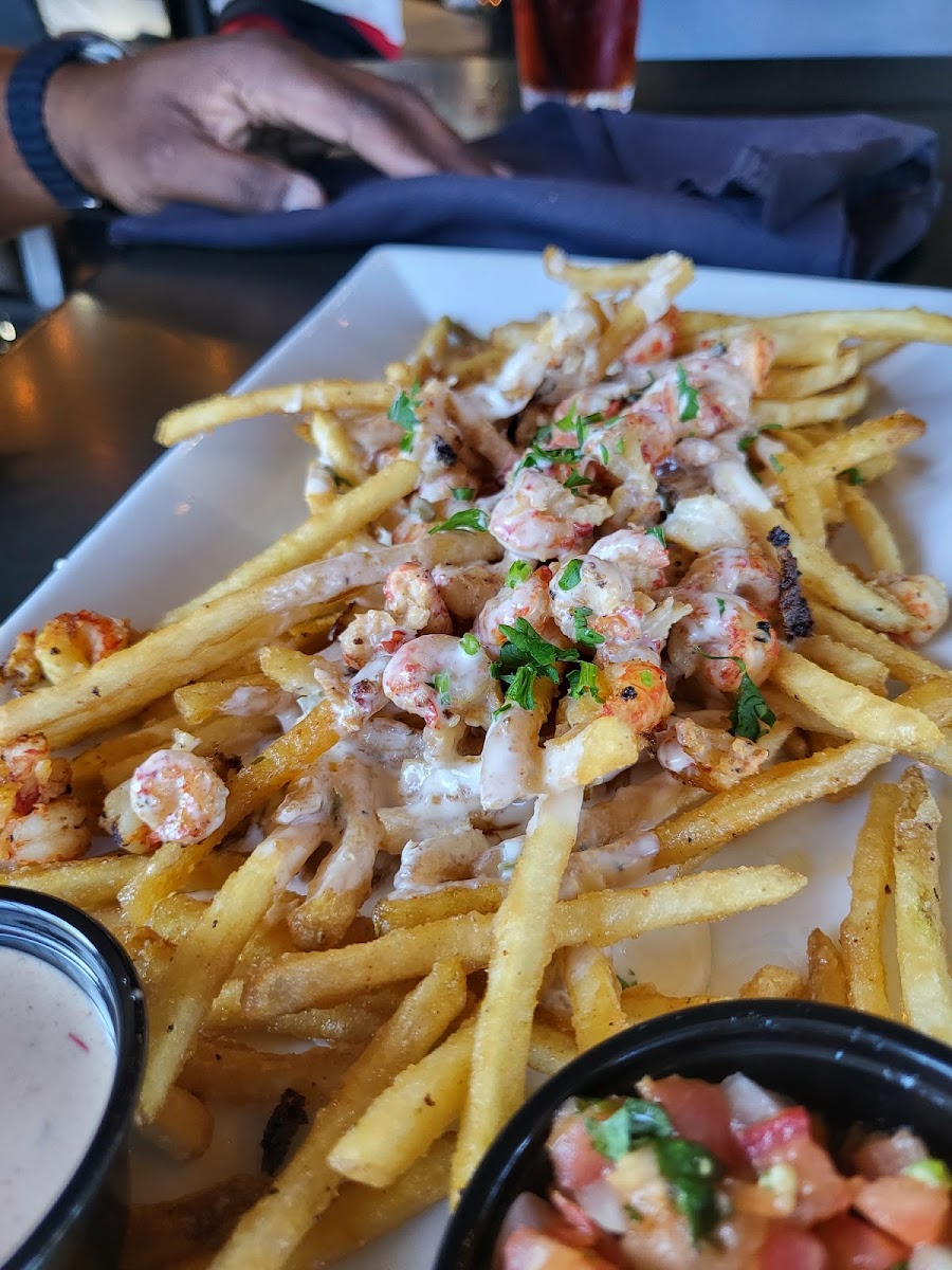 To be honest, we only stopped here to use their restroom and get a drink. But after looking at the menu and seeing what people around us were getting, We just had to try their food. I'm so glad we did! The "Crawfish Queso Fries" was amazing! Ate it all! My wife loved the "District Salad." Our friend had their chicken wings tossed in honey bbq. When they say "Jumbo" wings, they ain't lying! Those were the fattest wings we ever saw! And tasty, too! Our server was great too. Next time we will go there hungry!!