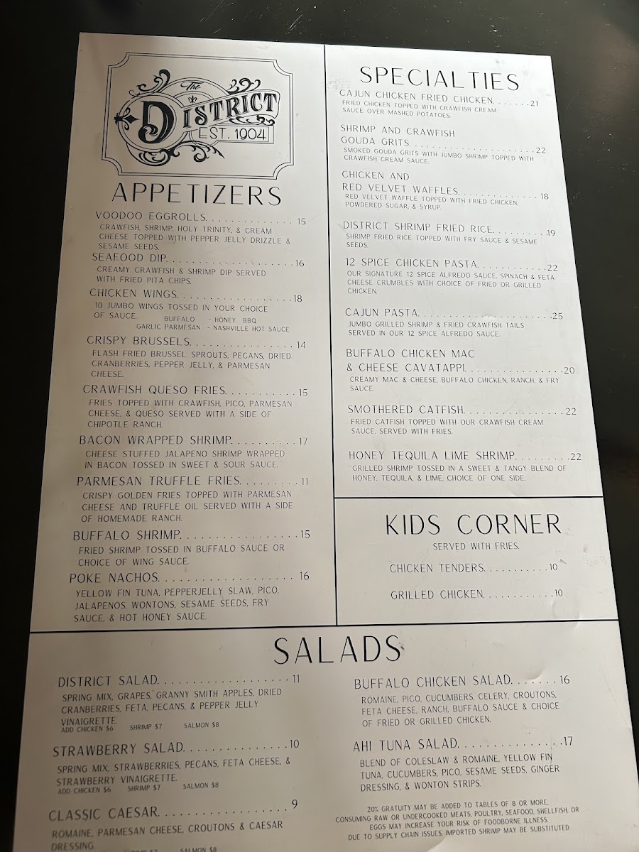 Whether indulging in the Buffalo Chicken Wrap or the renowned Crawfish Queso Fries, the dishes are crafted with care and attention to detail. With exceptional service led by friendly staff members, The District promises not just meals but memorable dining experiences. Come discover why patrons return time and again for their culinary delights and welcoming ambiance!